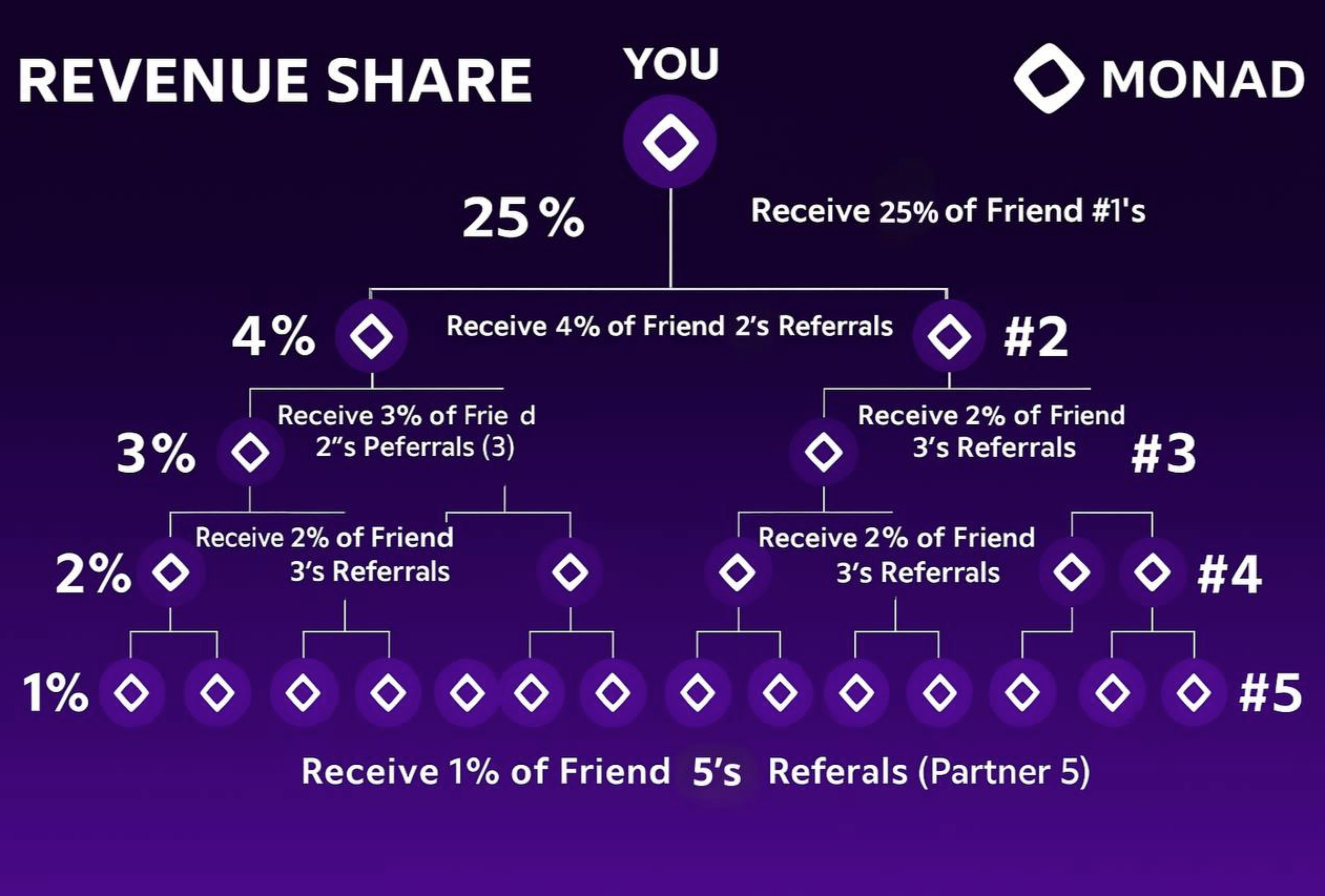 * **Level 5**: You earn **1%** from the fees paid by referrals of your Level 5 partners.